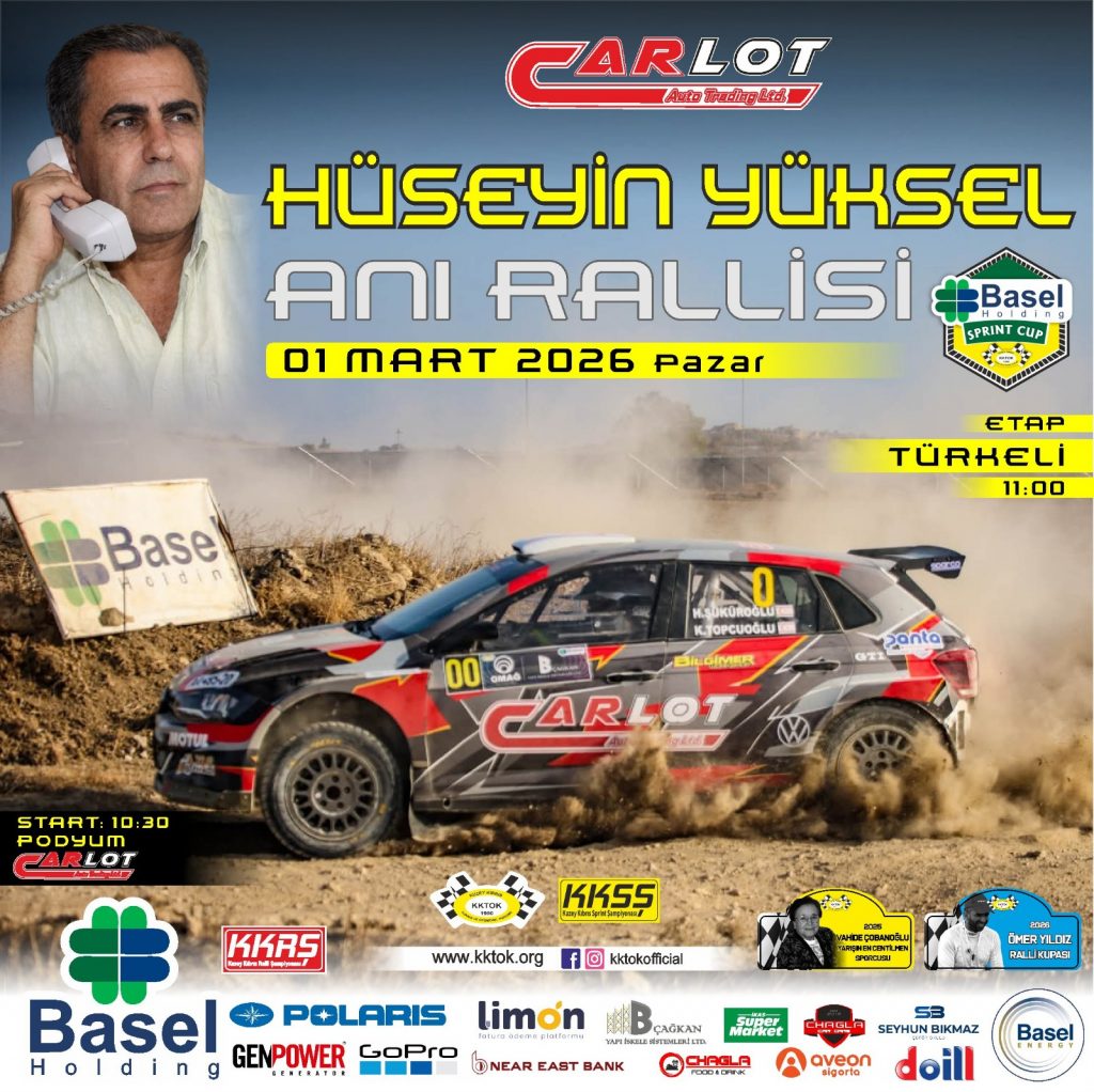 Kuzey Kıbrıs Turing ve Otomobil Kurumu’nun organize ettiği ve ana sponsorluğunu Basel Holding’in üstlendiği 2026 Kuzey Kıbrıs Ralli ve Sprint Şampiyonası 1 Mart 2026 Pazar günü başlıyor. “Hüseyin Yüksel Anı Rallisi” adıyla yapılacak yarış, Türkeli bölgesinde hazırlanan etapta yapılacak.